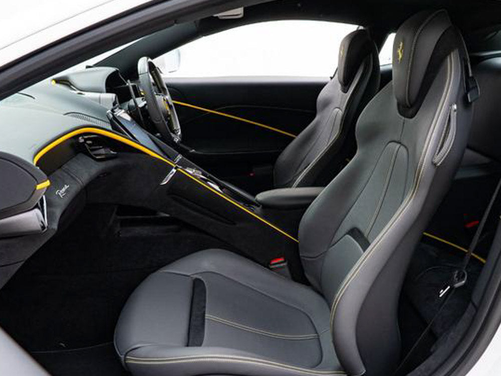 Discover this pristine 2022 Ferrari Roma from an authorized dealer. This model combines timeless Italian elegance with cutting-edge performance technology. The vehicle features a comprehensive ADAS full safety package for enhanced driver confidence, complemented by premium carbon fiber accents including a front spoiler, LED steering wheel, and rear diffuser that amplify its aerodynamic presence. Climate control with heating and ventilation ensures year-round comfort, while integrated Apple CarPlay connectivity seamlessly bridges your digital life with the driving experience. A refined entry point into Ferrari ownership, meticulously maintained and ready for the road.