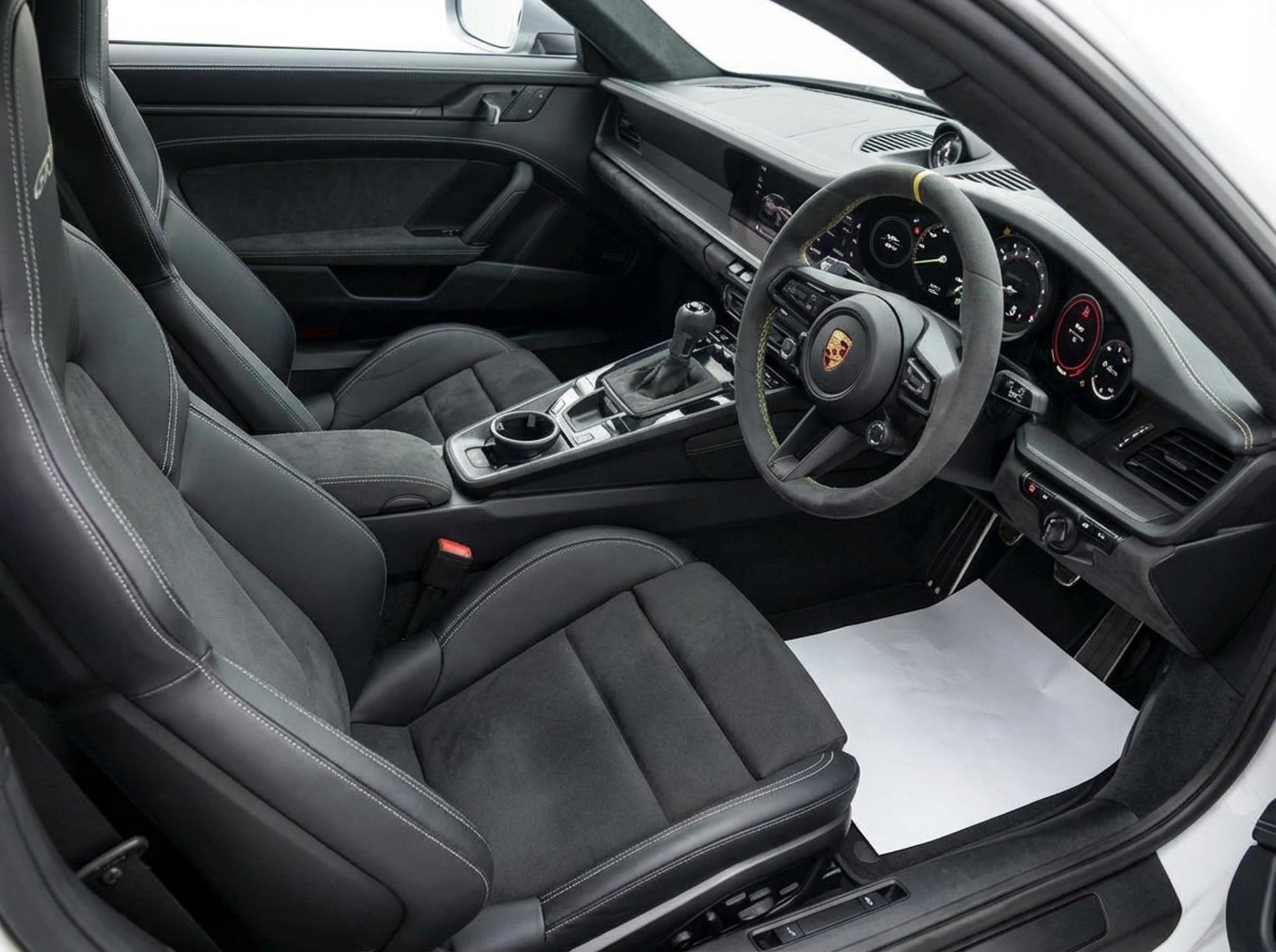 The 2025 Porsche 911 GT3 RS is the ultimate track-focused evolution of the 992 generation, powered by a 4.0-liter naturally aspirated flat-six engine delivering 518 hp (525 PS) and a 9,000 rpm redline. Distinguished by its Formula 1-derived active aerodynamics—including a Drag Reduction System (DRS) and massive adjustable rear wing—this model achieves 0-60 mph in just 3.0 seconds while generating over 1,895 lbs of downforce at 177 mph. This specific example enhances driving precision and livability with Porsche Ceramic Composite Brakes (PCCB), a front axle lift system for road clearance, lightweight staggered 20/21-inch forged wheels, and 18-way electric adaptive sport seats for optimized comfort without sacrificing its limited-production, motorsport-bred engineering.